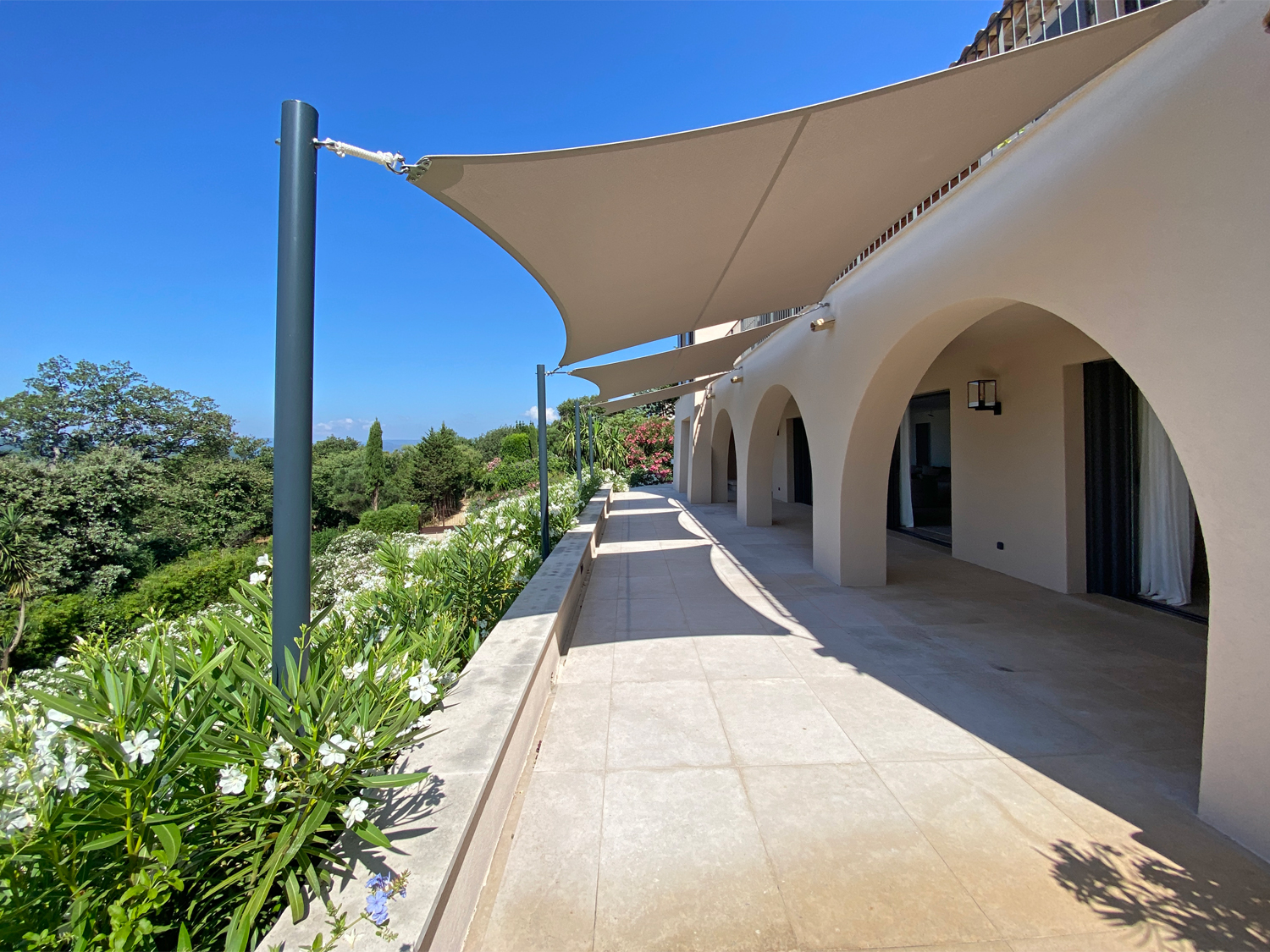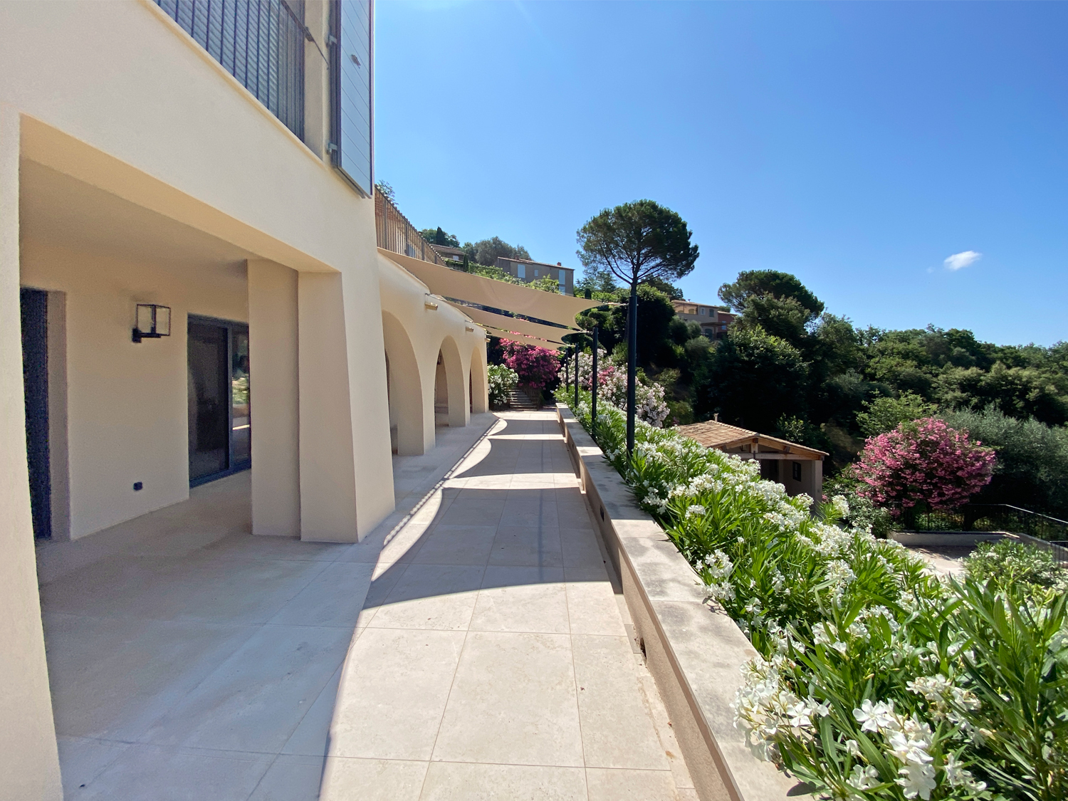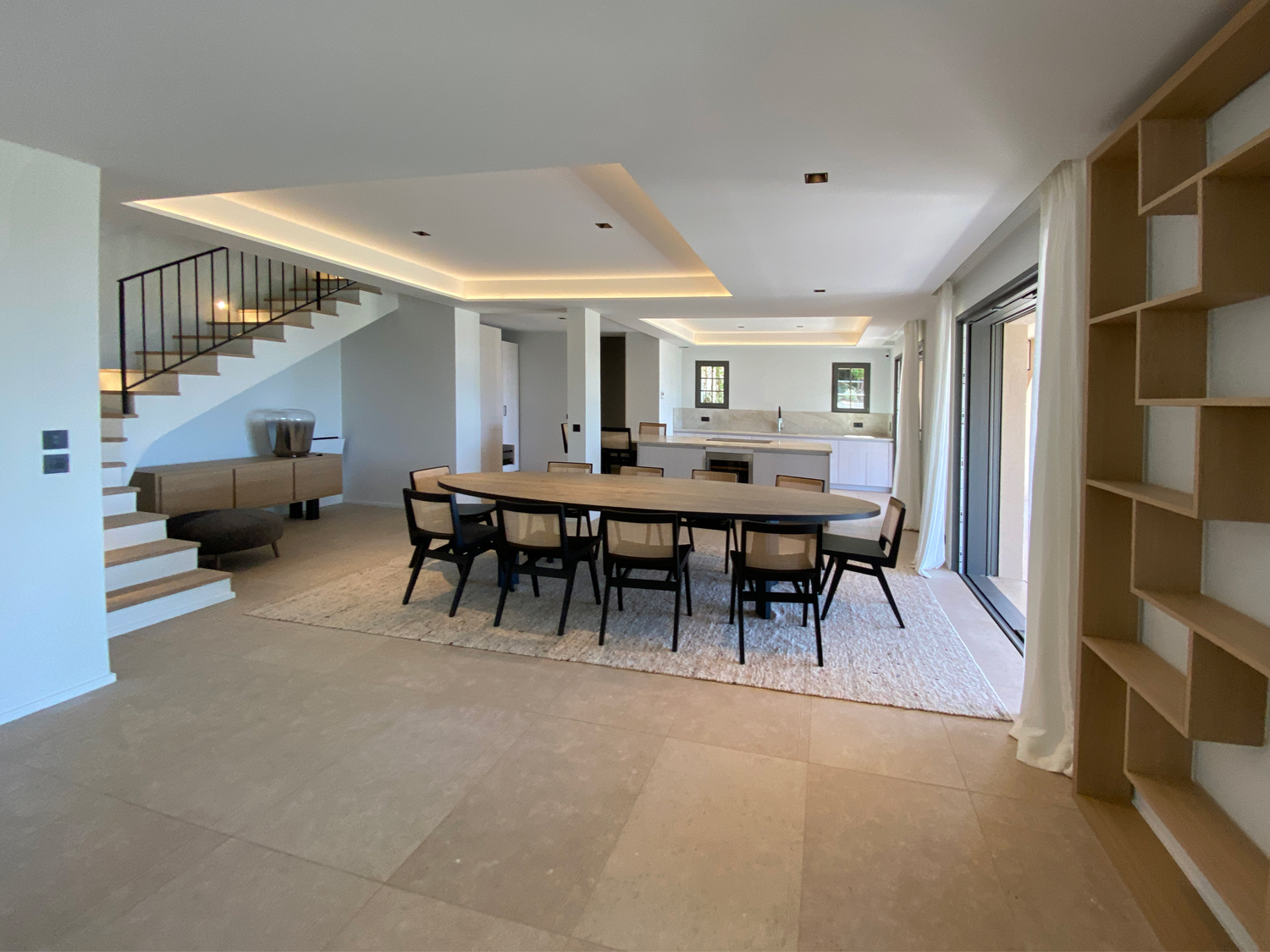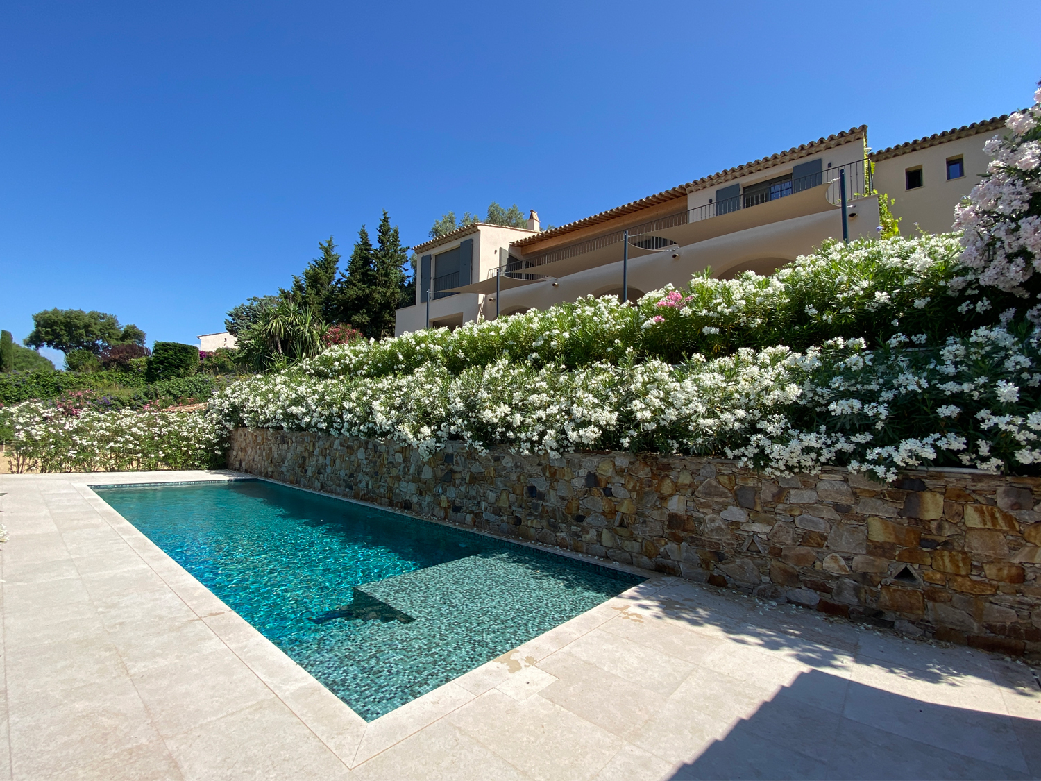 Upstairs, a family suite comprising two bedrooms sharing a shower room enjoys direct access to a private garden. Three other beautiful bedrooms each have a walk-in closet and their own bathroom. All these bedrooms open onto a large shaded terrace offering a splendid sea view.
