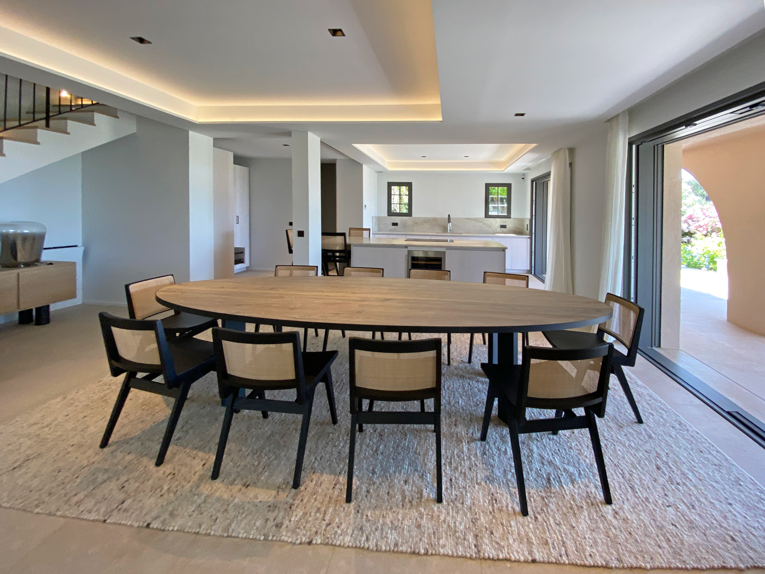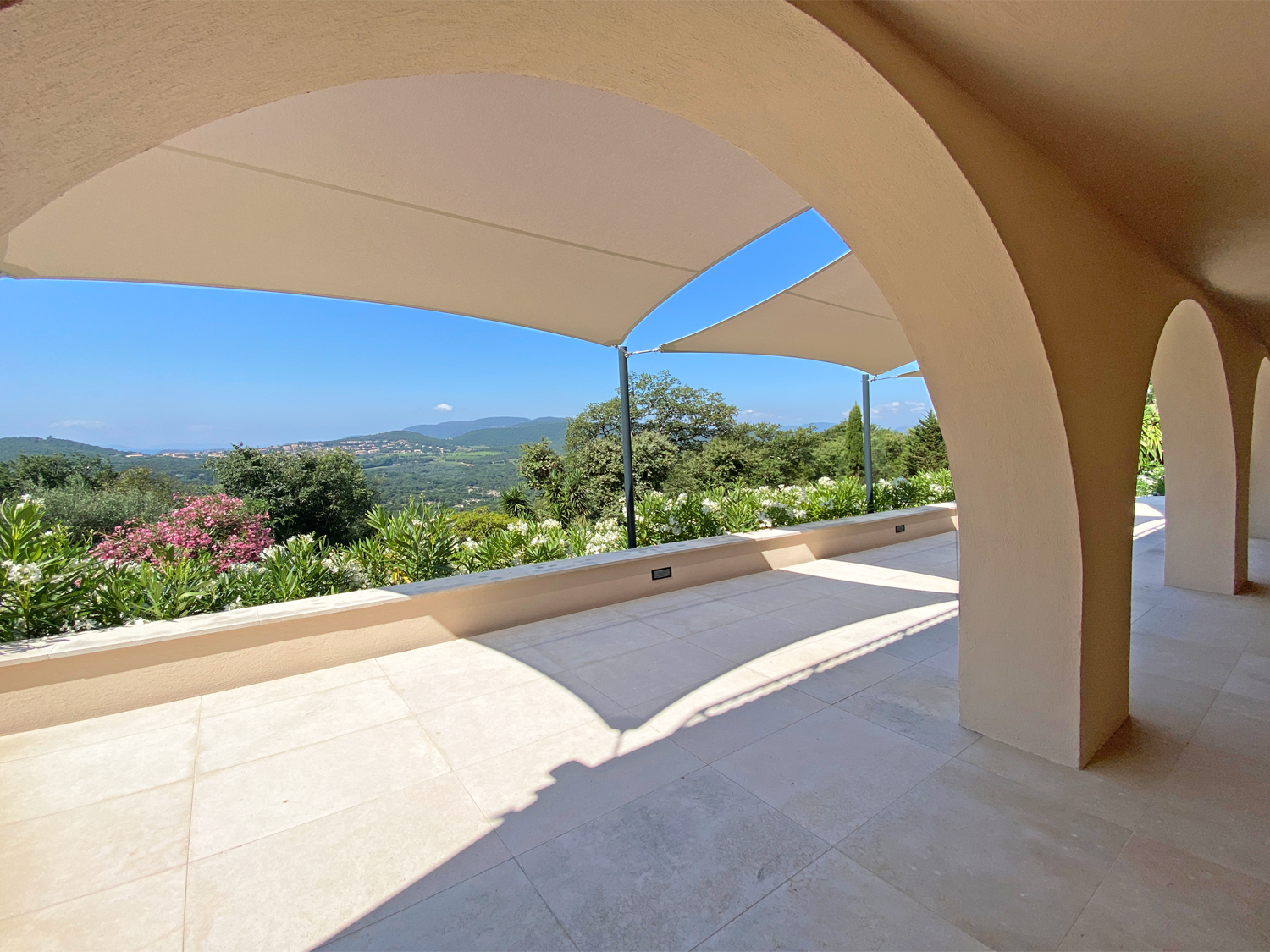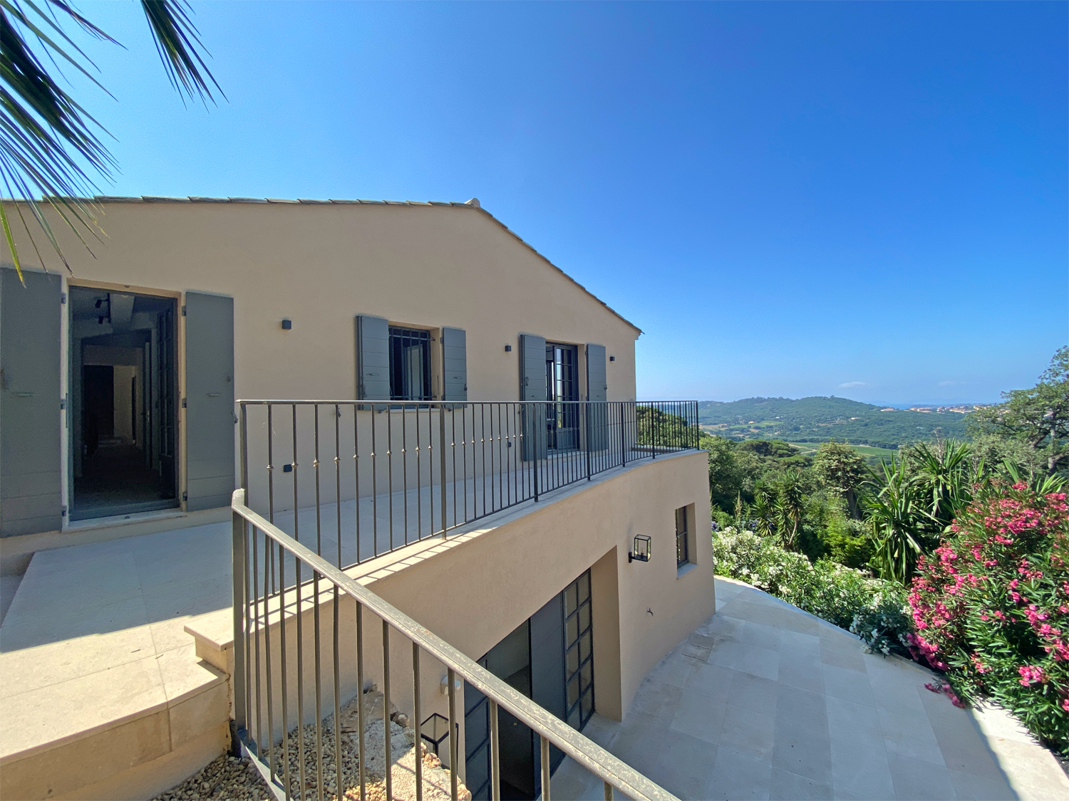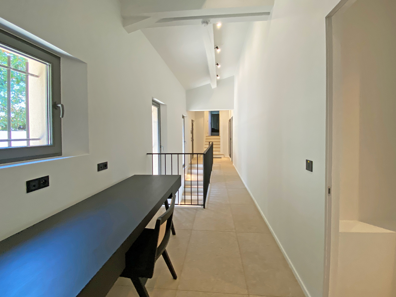 Upstairs, a family suite comprising two bedrooms sharing a shower room enjoys direct access to a private garden. Three other beautiful bedrooms each have a walk-in closet and their own bathroom. All these bedrooms open onto a large shaded terrace offering a splendid sea view.