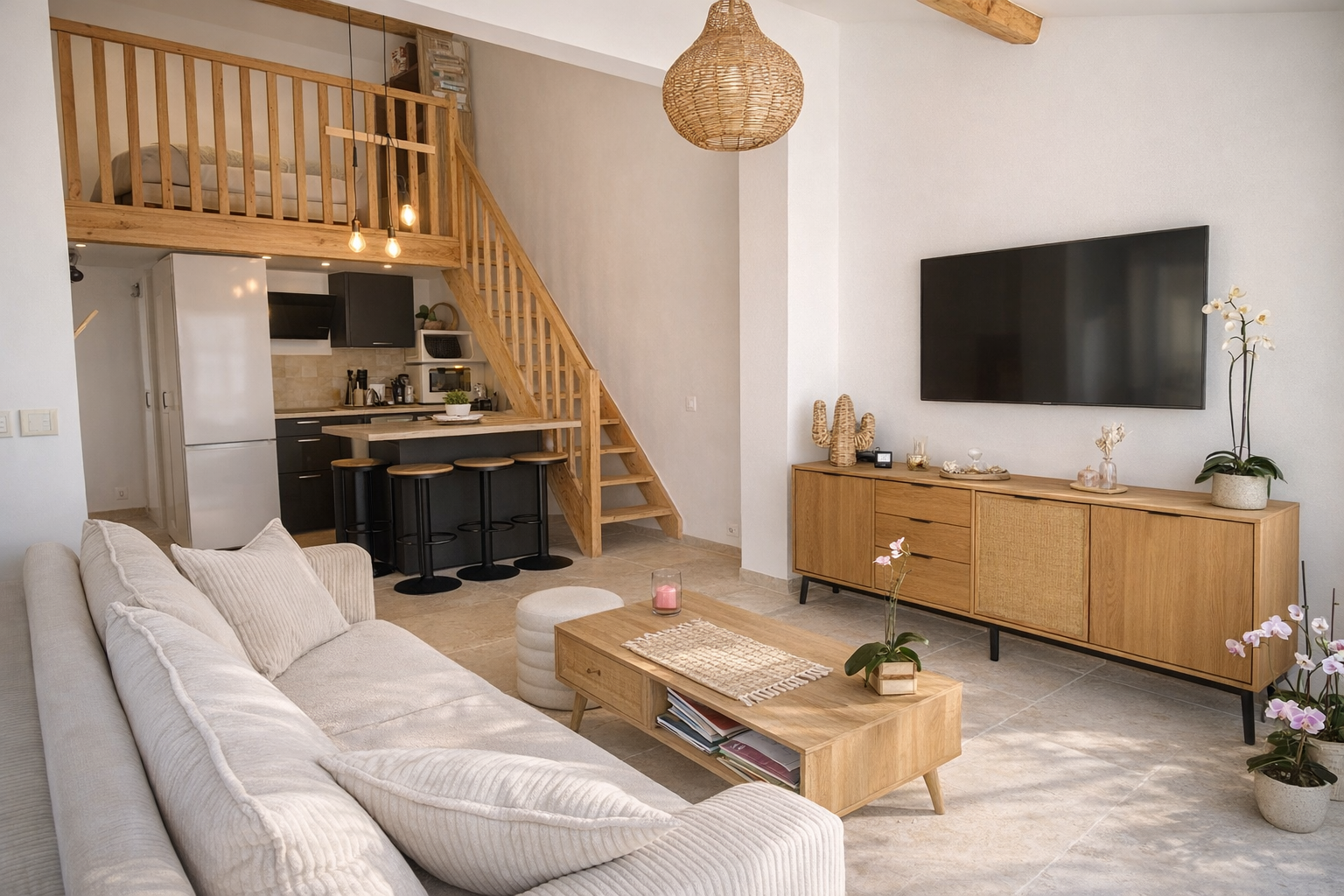 Dès l’entrée, vous découvrirez un **séjour lumineux** avec **cuisine ouverte aménagée et équipée**, offrant un espace de vie agréable et fonctionnel. L’ensemble s’ouvre sur une **terrasse prolongée par un jardin privatif clos de 80 m²**, idéal pour profiter pleinement de l’extérieur en toute tranquillité.